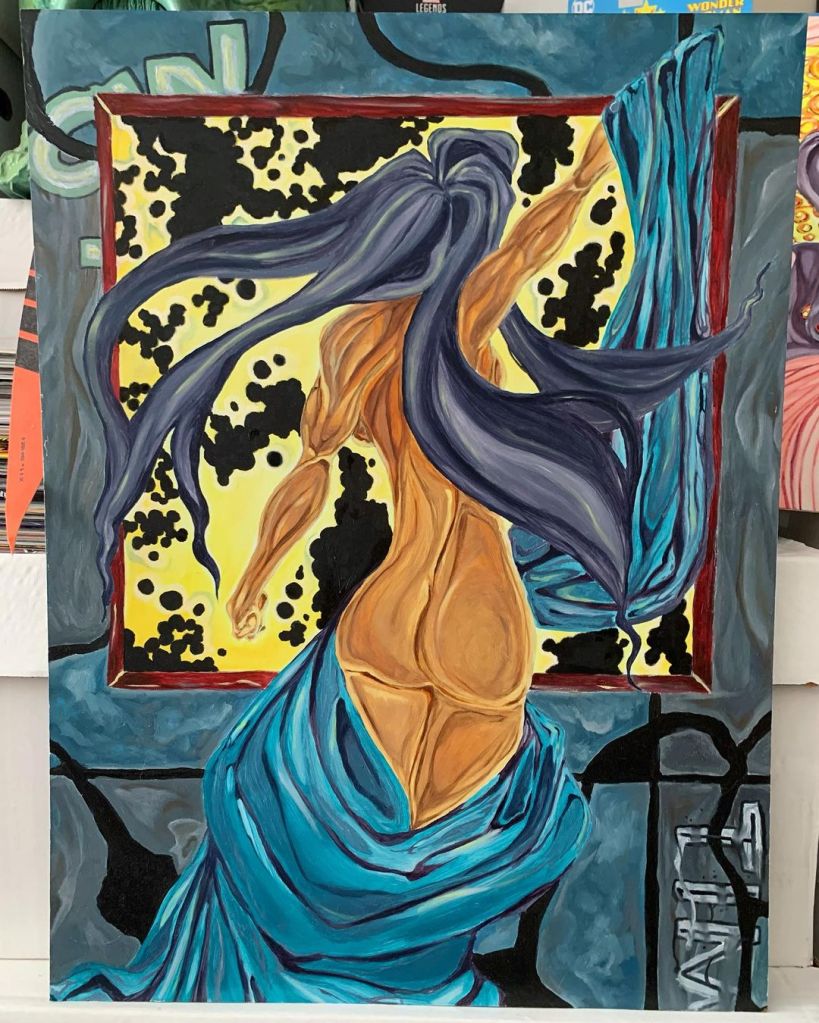 I didn’t plan on finishing one painting this summer, let alone three. This piece is based off of an old sketch I did of (I think) a model from 2017. It’s loosely based on the story of Actaeon and Diana, of Roman mythology, as depicted by the 1979 animated film, WINDS of CHANGE. I listened to its soundtrack for weeks while this was in process. Both the movie and Alec R. Costandinos’ album have continuously inspired me since I first saw/heard as a child.
