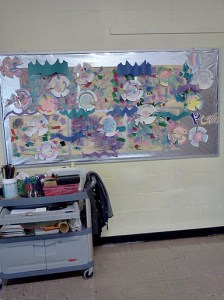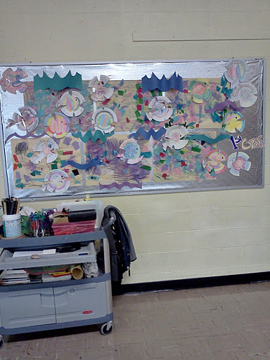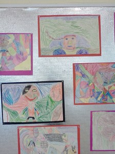 Wouldn’t you know it, I was packing for a week trip to Mexico in late August when I received a call, “Hey, are you free to teach public school for six weeks?” I barely had time to unpack and begin composing lesson plans when I found myself being introduced to two elementary schools worth of students, K-6. I had grand plans for my month and a half as the art teacher, but as many teachers know and I began to understand, there’s never enough time. That’s not to say the students and I weren’t successful with what I set before them. Rather, I’m pleased with what was accomplished and I was disappointed when realization set in that I wouldn’t be able to continue and for some classes, complete our art projects. From lessons starting with line, to shape, and on to color I managed to set up two bulletin boards with finished pieces that students can be proud of. What’s presented here is just a smattering of what my twenty classes completed. For details on the projects (Marc Chagall inspired portraits and shape fish with collage ocean) email me,
