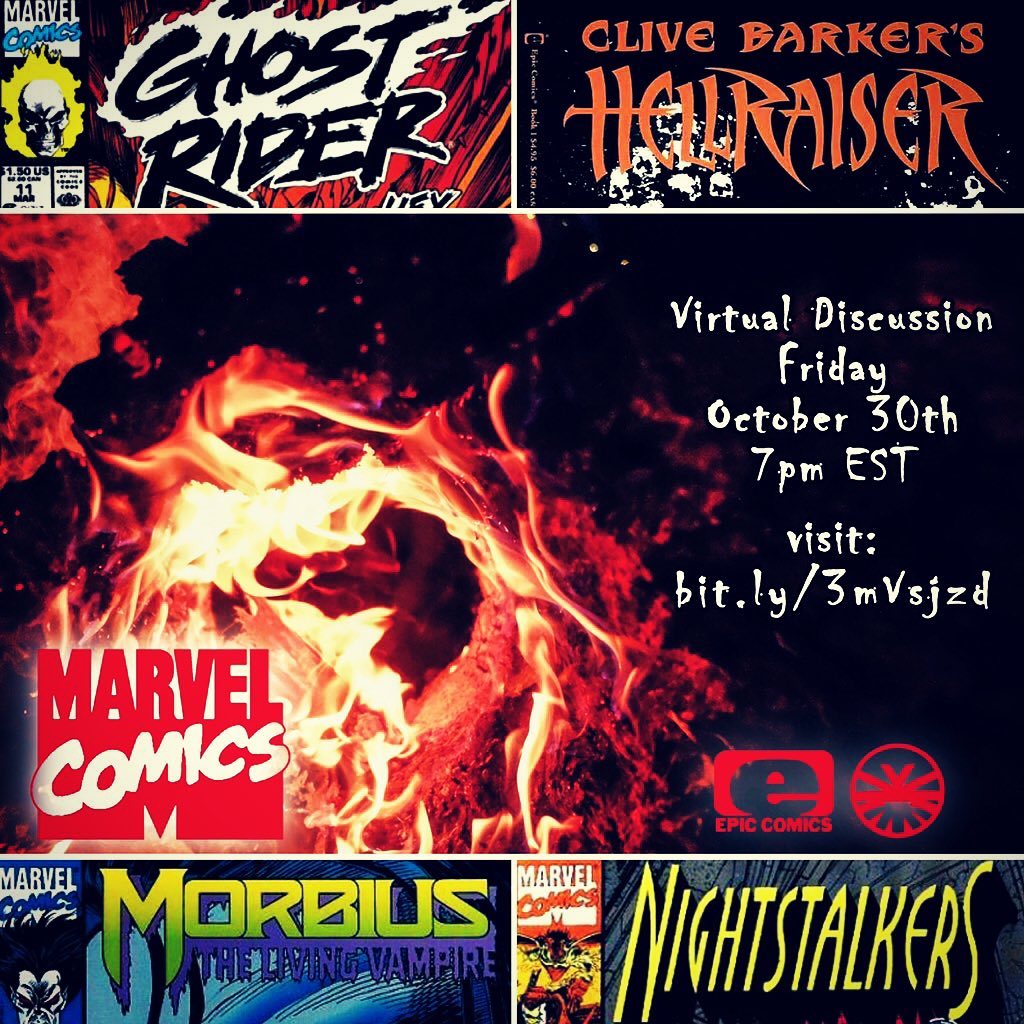 Today, Friday, October 30th, 7 PM (EST) I’ll be joined by 90s Marvel Comics creators D.G. Chichester, Christian Cooper, Howard Mackie, Marcus McLaurin, and Gregory Wright. We’ll be discussing the Midnight Sons: Ghost Rider, Darkhold, Morbius, Nightstalkers & more. We also plan on looking at the Clive Barker list of titles published through Marvel’s imprint Epic Comics. It all happens here on this channel!