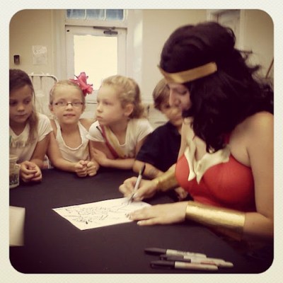 I’m working as both teacher and co teen program coordinator, but that’s not to say I stepped away from the elementary age students. Today I hosted a guest speaking event with Wonder Woman who spoke on being a real-life hero. My friend, Maggie, rocked as the Amazon Princess.